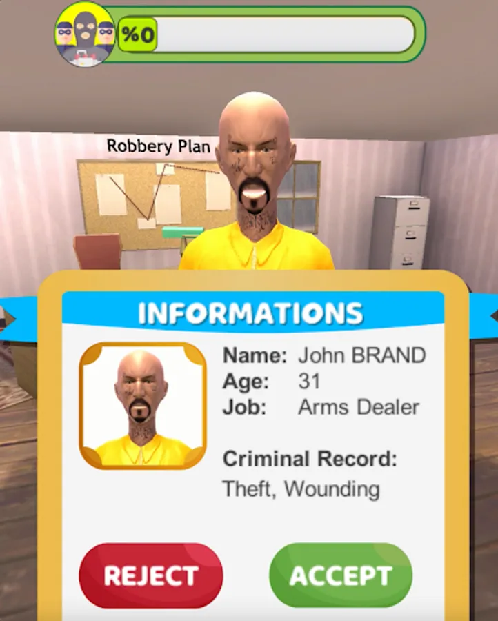 We choose the necessary plans such as the mask and costume to be used in the bank robbery, the selection of our teammates, the weapons to be used, the vehicle to escape. There will be options for us to decide during the robbery. There will be sections such as drilling the bank safe with a special drill, properly filling the money in the bag. The robbery will start from a small bank and move on to large banks in the next chapters.