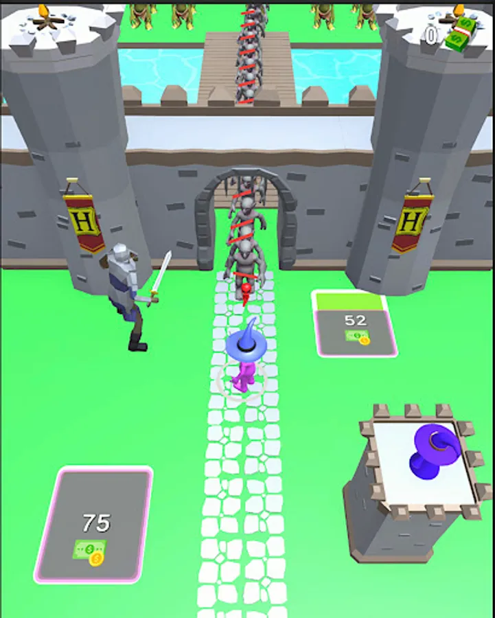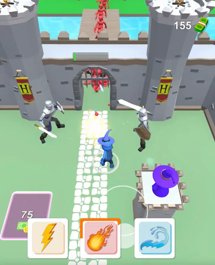 We fight to defeat the enemy by protecting the castle with various spells, spiritual knights and archers that protect against enemy goblins and other creatures. We are improving our castle and sorcery abilities by trying to get better against new waves of enemies.