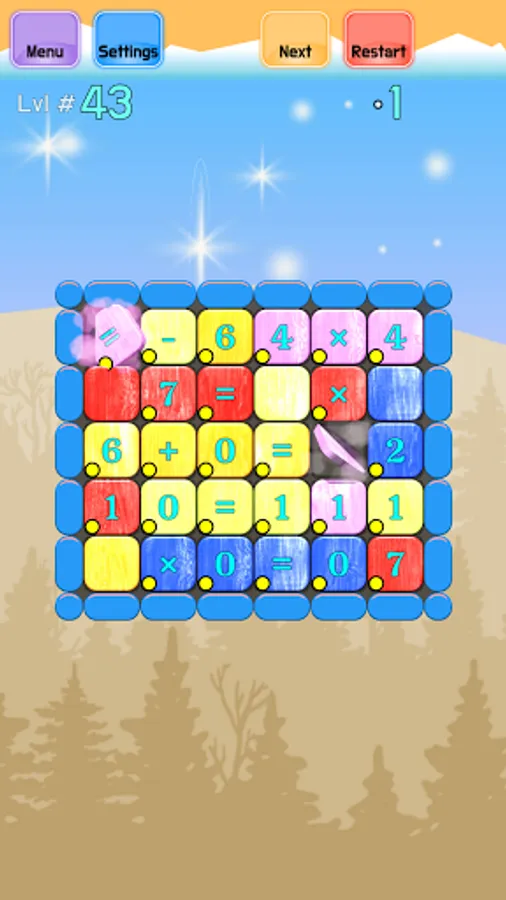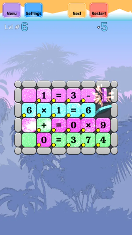 Our game is a puzzle of numbers and operators you need to arrange into a valid equation by selecting two tiles to swap each time, with cool motion, 5 game modes, customizable difficulty, thousands of levels, and an appealing visual package with pleasant music.