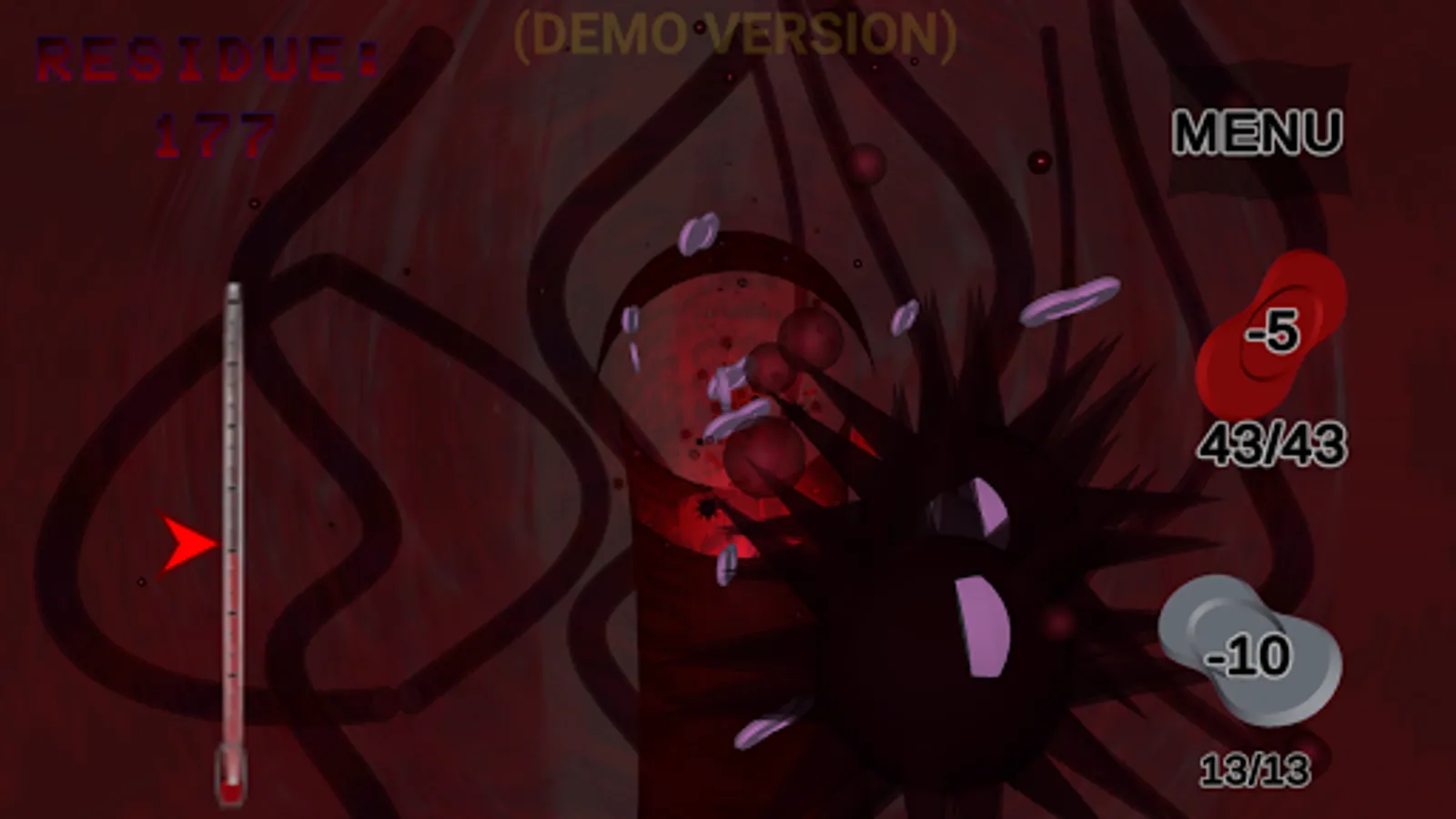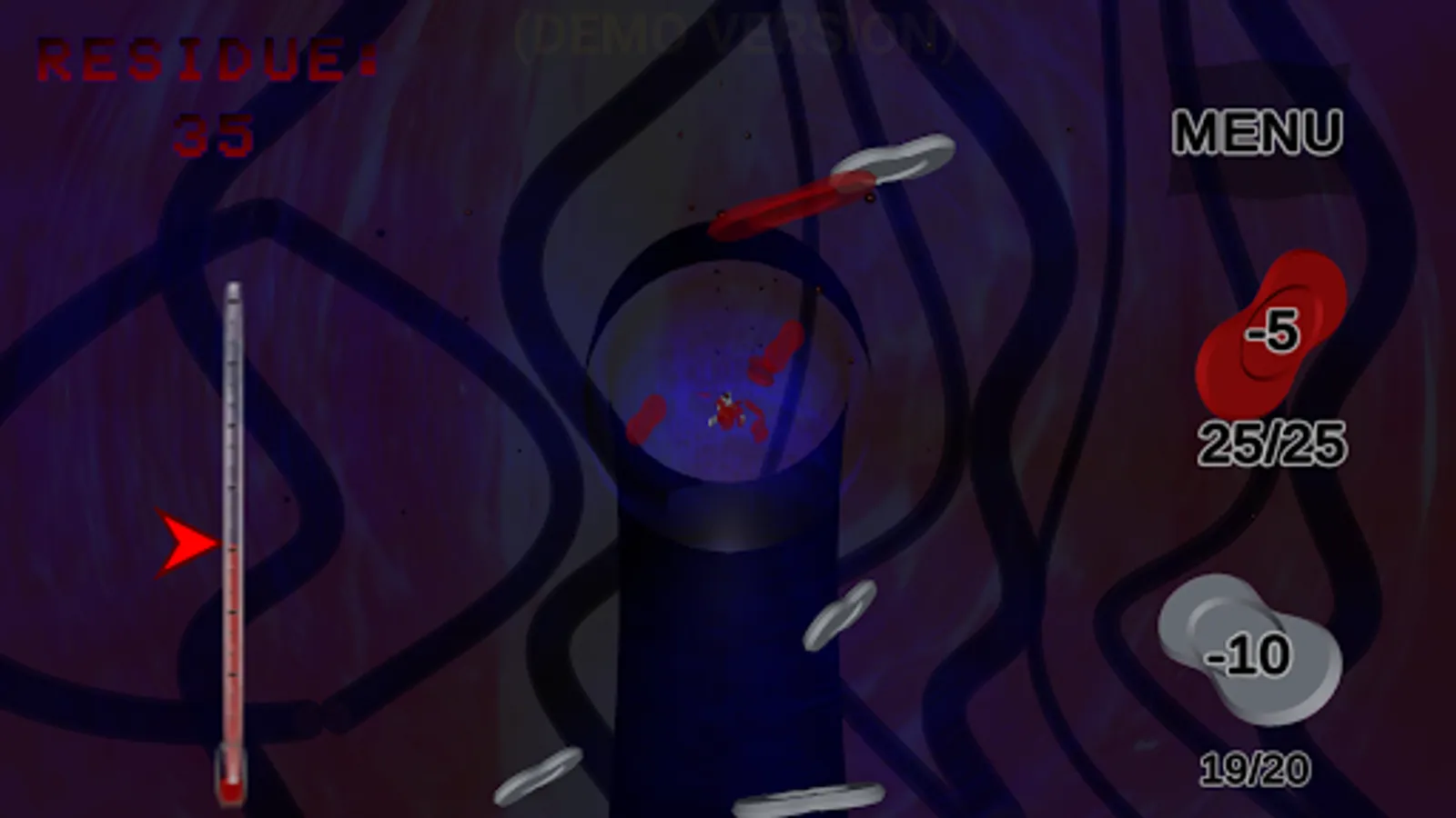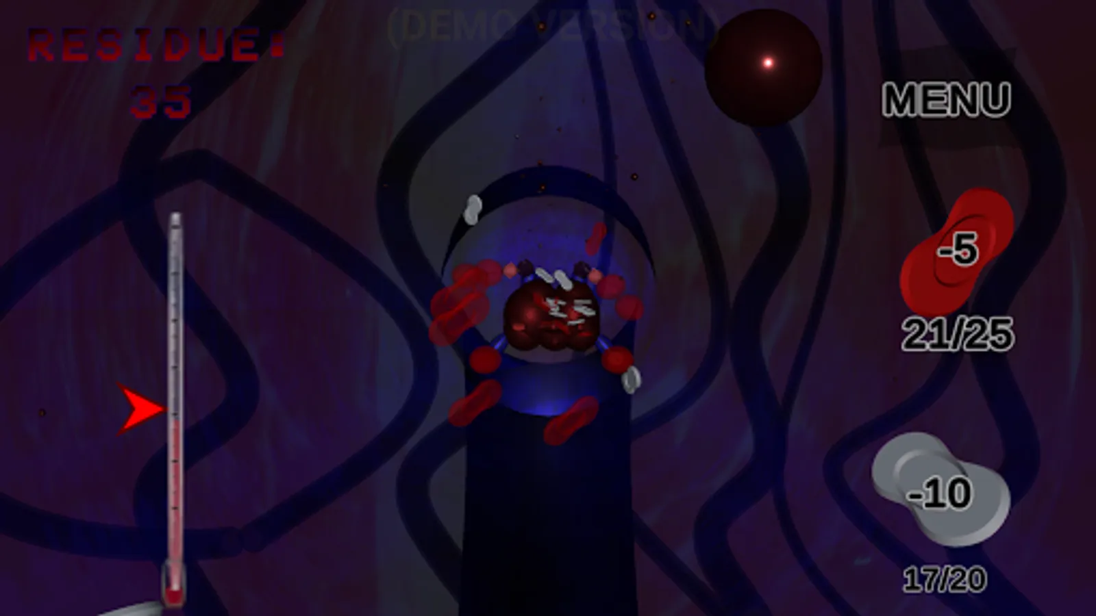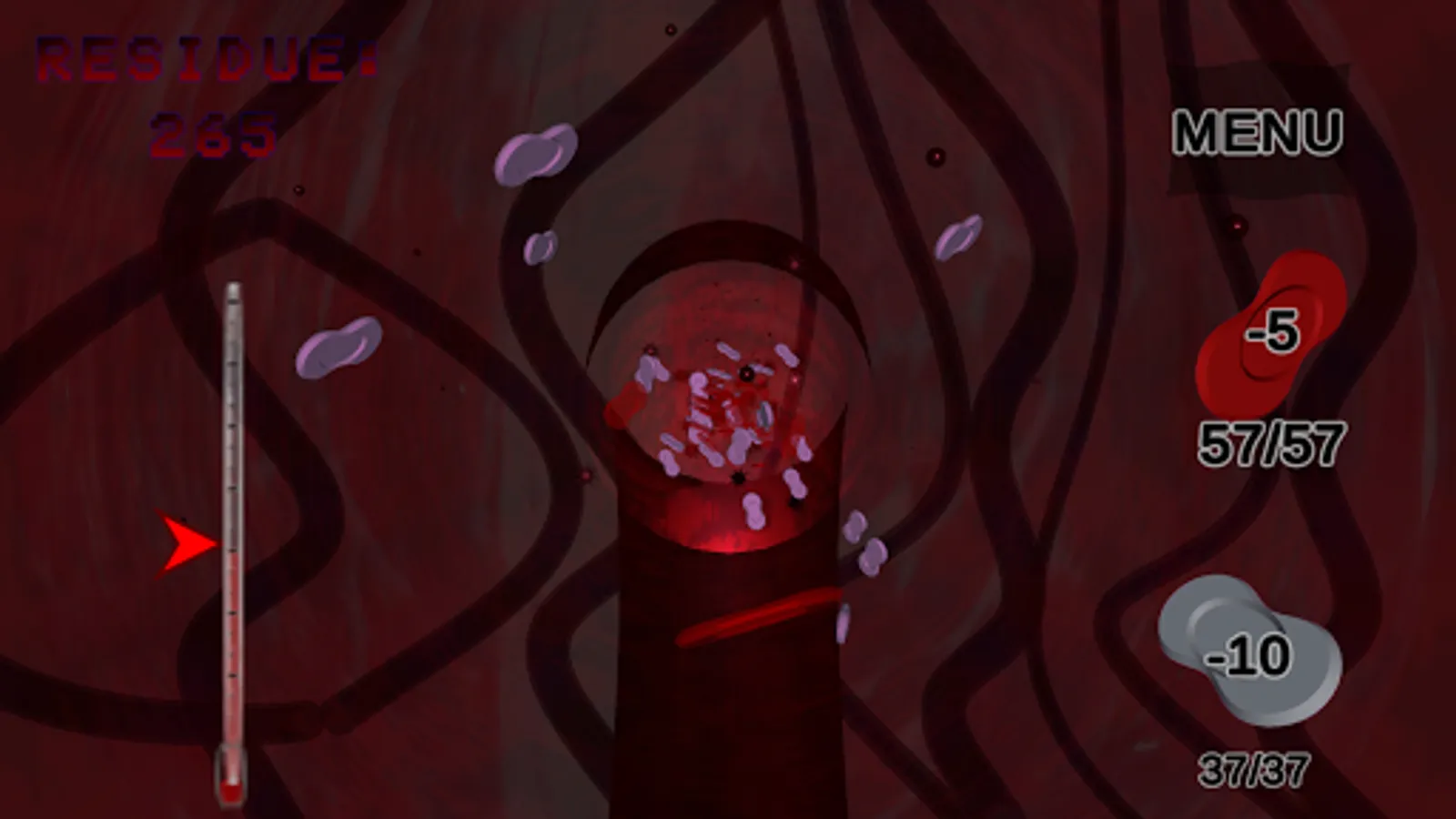 BALANCE the body's temperature by selecting your target temp, enemies will attempt to throw this into chaos and collapse the immune system. Use red blood cells (RBCs) to maintain an ideal temperature while you destroy the enemies.