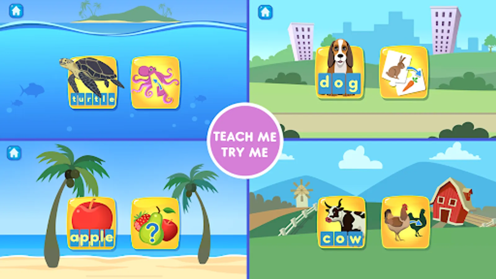 15 fun educational games and interactive lessons. Lessons include: ABC, 123, Fruits, Farm, Sea Creatures, Pets and Wild Animals.