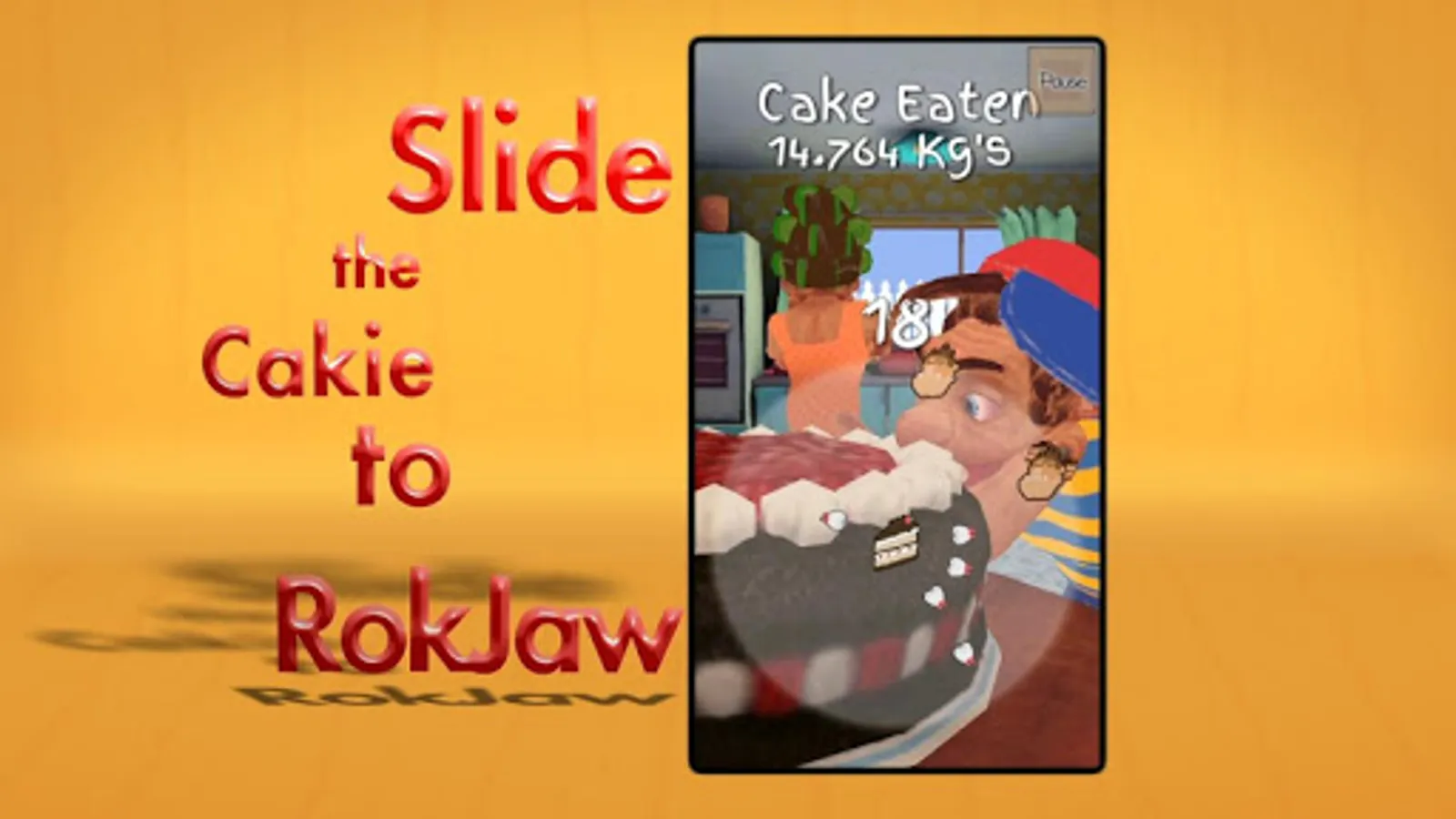 * Just slide the cake with your finger into Rokjaw's mouth, but be careful to avoid the teeth. The faster you do this, the more you score. Each time you pull this off, a new round will start again. Rokjaw always wants "cakie".