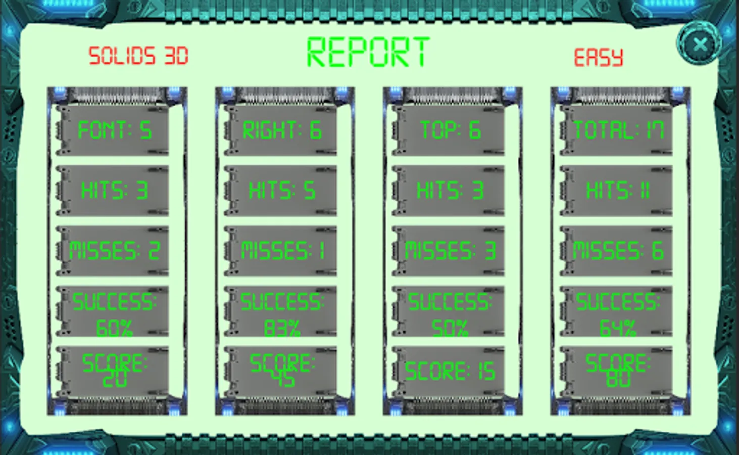 Teachers can also obtain a tool to assess their students in the correct display of the solid faces (front, right, top); the student may be immediately fed back by the application to indicate whether successful or not has the answer given.