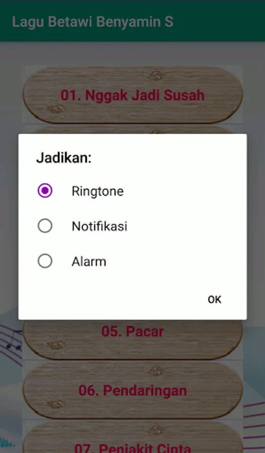 Betawi Songs Benyamin S contains the best collection of Betawi songs sung by Benyamin Sueb, the greatest artist in the Betawi area. Install and enjoy Betawi songs such as Virgin or Widow, Domestic Problems, Sama Sama Rukiah, Si Pitung, Tekad Kawula Muda, Vegetable Maker, etc. An application that Betawi music fans will definitely enjoy. Presented in quality offline audio. Equipped with a Ringtone feature so that it can be used as an Alarm, Notification, and Ringtone.