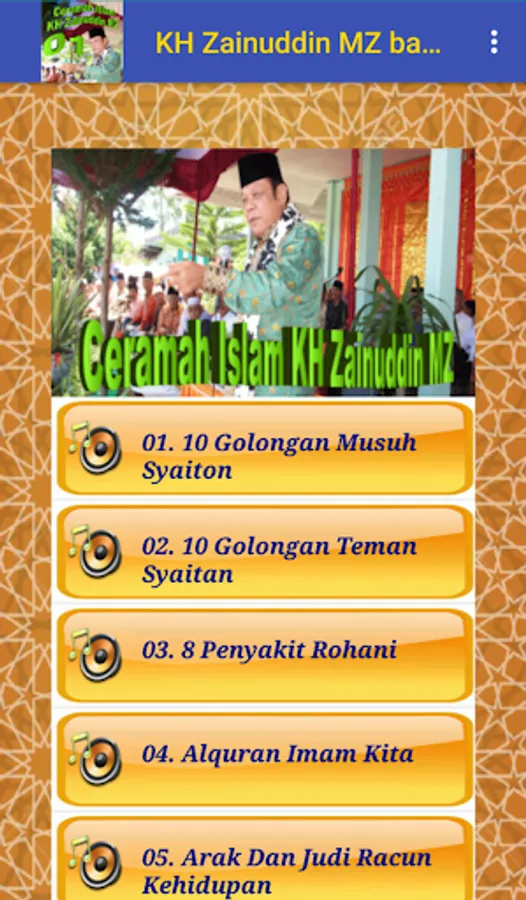 Application of Islamic Lectures KH Zainuddin MZ this first part will make it easy to be able to always access the best Islamic lectures through the Android gadget. After installing, this application can be enjoyed with minimal data connection requirements even though offline. So it will greatly save the quota. The best Islamic law is obtained without wasteful quota.