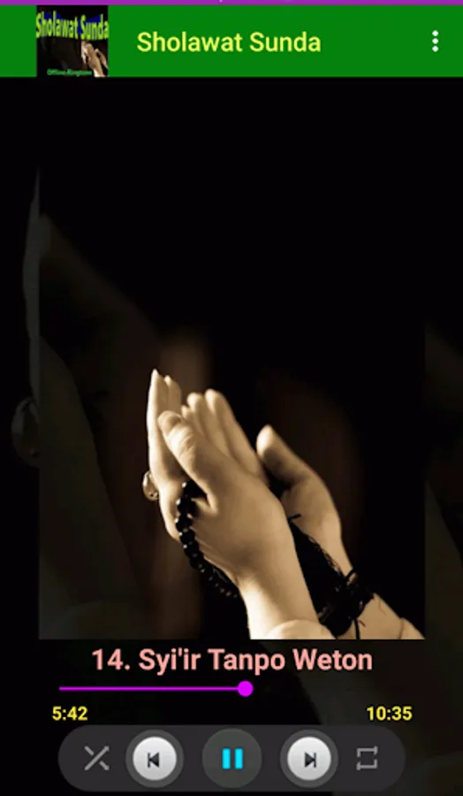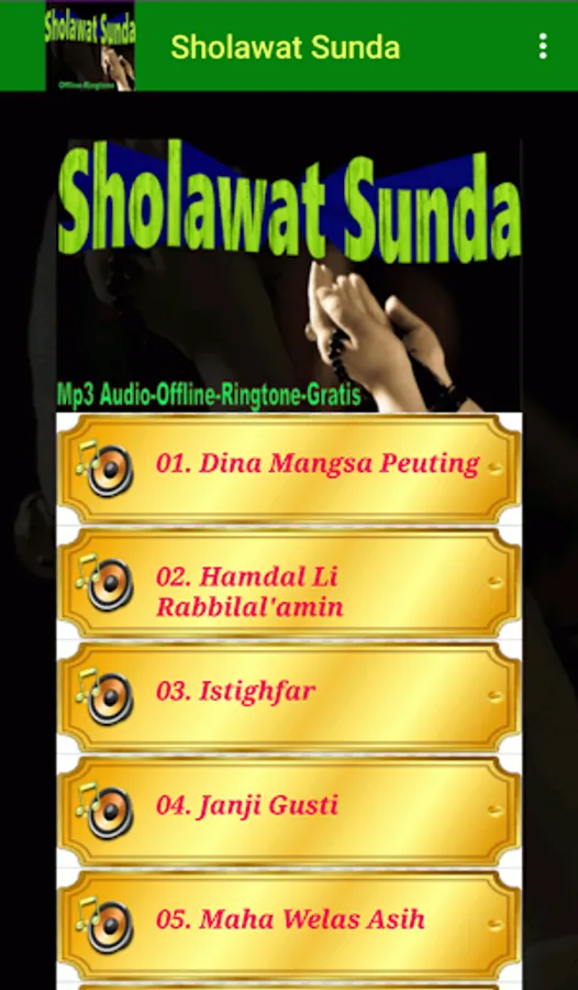 Presented Sundanese Sholawat application which contains the best collection of collaboration of Sundanese musicians in sholawat - can be in the form of Sundanese music accompaniment or in Sundanese. Install and enjoy Sholawat (prayer and praise of the Prophet Muhammad) in the magical nuances of Sundanese culture.