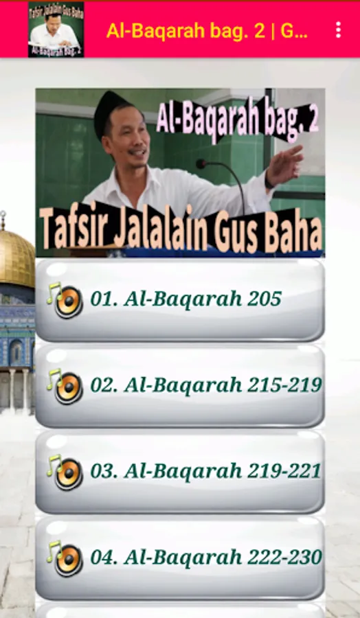 An Islamic Android Application is presented to fill the days of the Muslim Ummah with recitation of the Koran interpretation from prominent ustad and scholars. This time the second part of Gus Baha's Tafsir Al-Jalalain collection is presented with the theme of the Al-Baqarah chapter. Install and enjoy the discussion of the Al-Baqarah chapter by Gus Baha in Javanese.