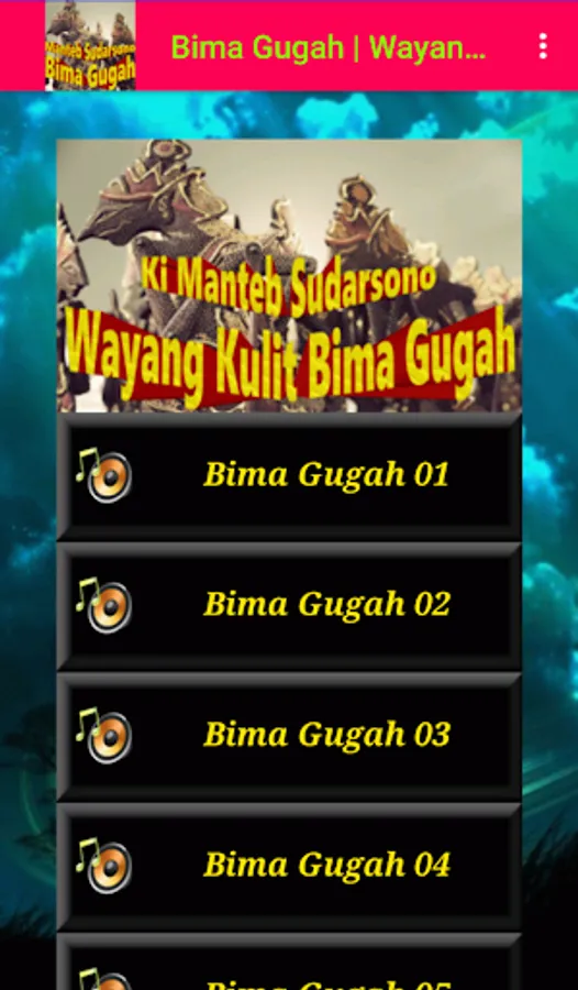 Enjoy the best collection of Javanese leather puppets in a play entitled Bima Gugah, performed by Dalang Ki Manteb Sudarsono. Bima Gugah is a Wayang Kulit story about Bima, a puppet character known for his strength and supernatural powers. Bima is one of the central figures in the Mahabarata wayang story. Bima is the second of the five Pandavas. How exciting is Bima's adventure this time? What battles did Bima go through? Who are the puppet characters involved? What is the role of the Pandavas and Kauravas in this? Install and find the answer.