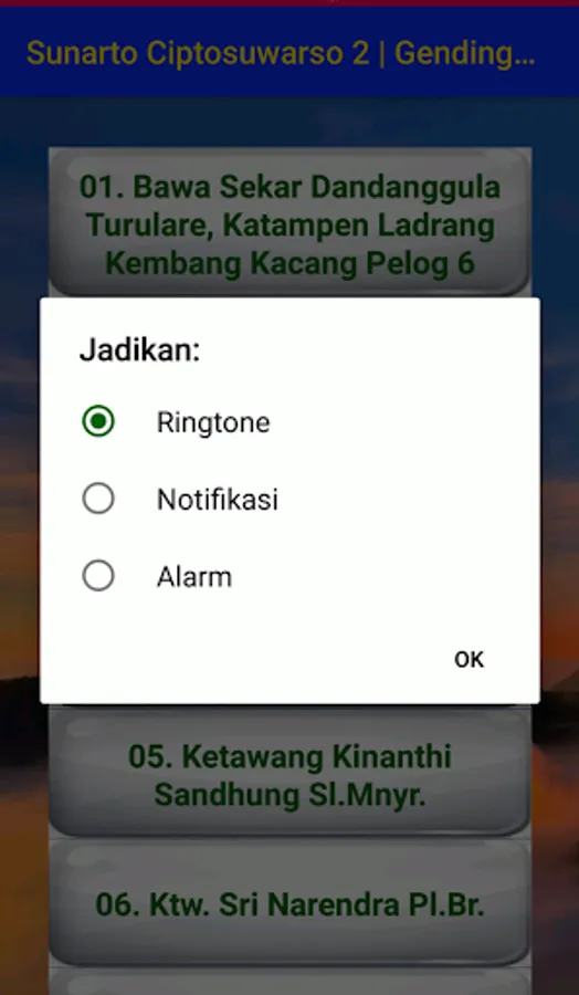 * Ringtone. Each audio can be used as Ringtone, Notification, and Alarm on our android gadget.