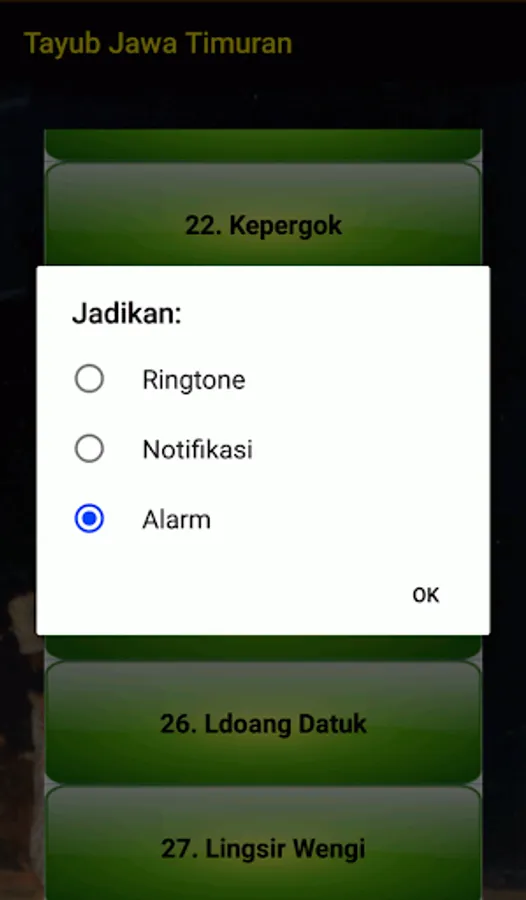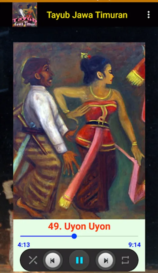 Tayub Jawa Timuran song is an application for music fans of the Land of Java, especially East Java. The East Java Tayub Song application contains 50 songs which (usually) are used to accompany the beautiful tayub dance. Install and enjoy the best East Javanese songs such as Ande Ande Lumut, Jambu Alas, Kere Mungah Bale, Sinom Worthy Songo, etc.