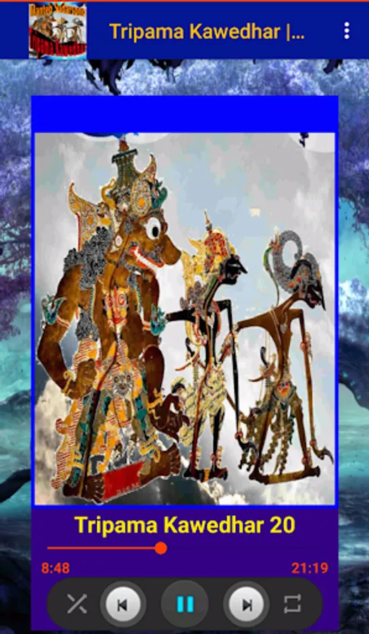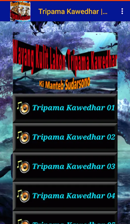 Enjoy the best collection of Javanese leather puppets in a play entitled Tripama Kawedhar, performed by Dalang Ki Manteb Sudarsono. The play Tripama Kawedhar tells the story of three wayang characters who are known as true knights. A knight who is a role model for all parties - no matter the antagonist or protagonist. The three puppet figures are Kumbakarna, Adipati Karna, and Patih Suwanda (Sumantri). Why are they called true knights? What are the knight values that each character reflects? What are the excitements that occur in the adventures of the true warrior characters? Who are the puppet characters involved? How will the fate of these knights end? Install and find the answer.