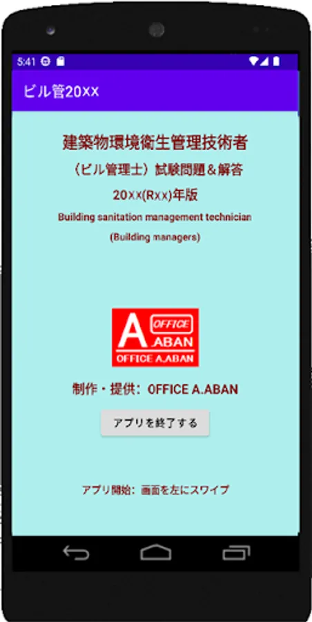 This software is designed as study software for preparing for the National Examination for Building Environmental Hygiene Management Engineers (Building Pipes). It was developed for smartphones.
