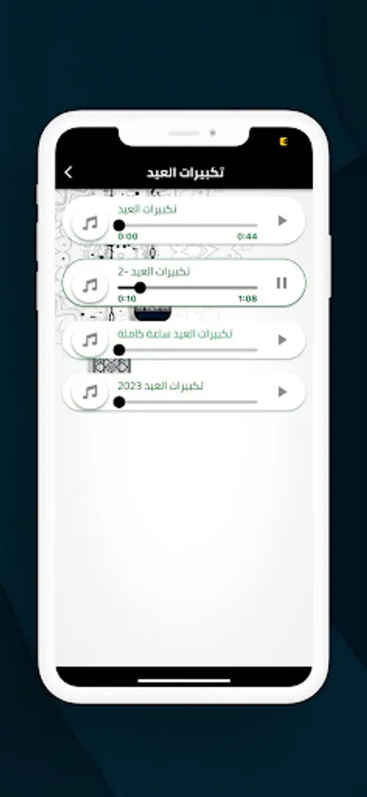 The application contains a large collection of takbeers for Eid al-Adha and Eid al-Fitr, where users can listen to the takbeers with high accuracy and excellent clarity. Users can also download their favorite takbeers on their mobile phones and listen to them at any time.