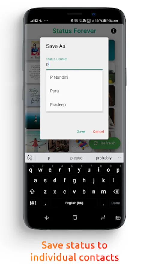 You can instead select the contact who post the status and Status Forever™️ will automatically store their statuses in their own private folder, which makes browsing through statuses of people dramatically simpler.