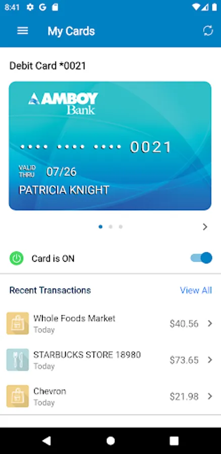 .Amboy Bank Card Manager helps protect your debit and credit cards by sending transaction alerts and giving you the
