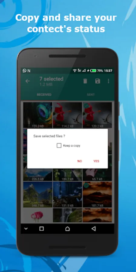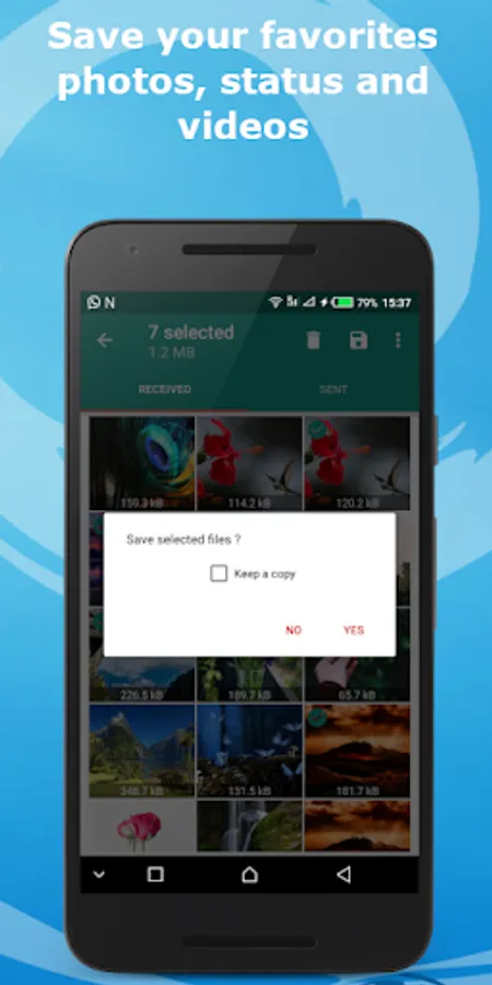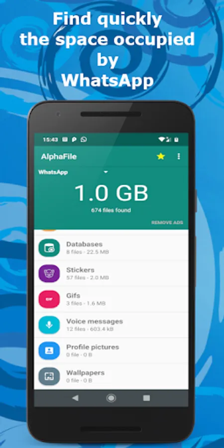 AlphaFile allows you to clean and free space occupied by WhatsApp files (videos, audios, images, documents, stickers). It allows you to save and share your contacts's statuses.
