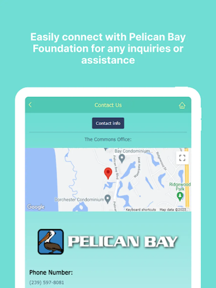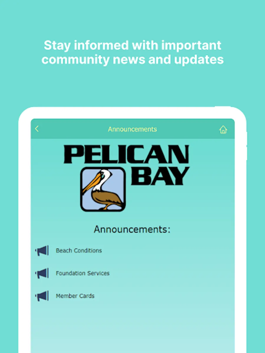 This app has been designed for members and guests as an up-to-date information and communication tool. Pelican Bay is the premier luxury community of Naples, FL featuring exclusive amenities with two beachfront restaurants, private beach access, and so much more to offer. Our focus is to provide a great user experience when seeking quick information resources in the community. In addition, it provides a multi-channel communication platform for interactions with the Pelican Bay Foundation.