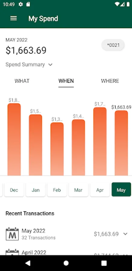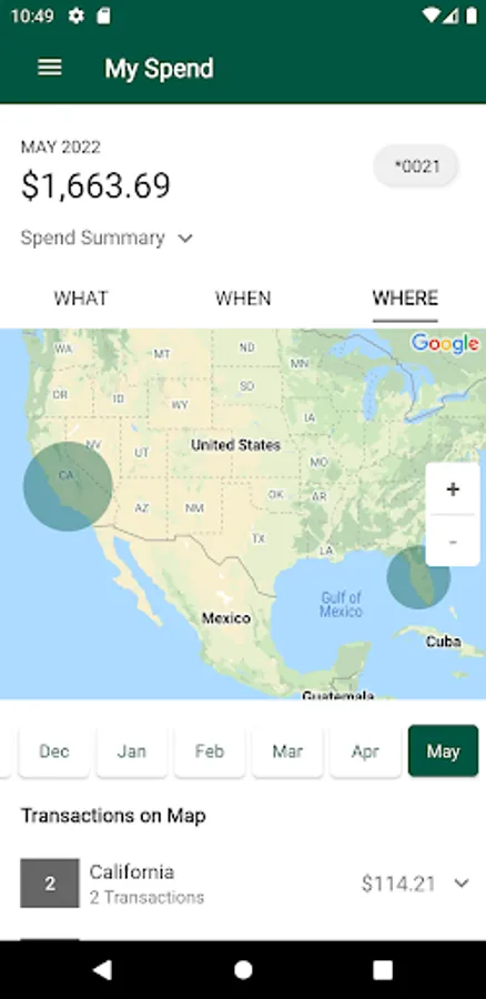 Get rich data about your card purchases, with Spend Insights. Sort spend insights by merchant category, location, and monthly trends.