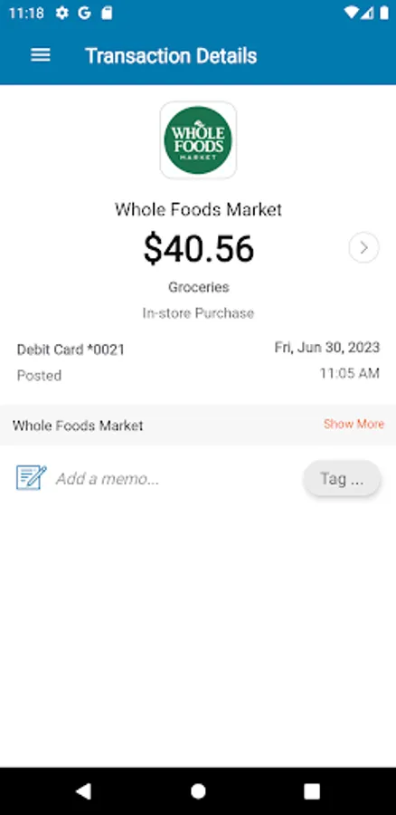 Alerts for PIN and Signature transactions can be set up to keep you informed of your debit and credit card usage and help you quickly detect unauthorized or fraudulent activity. The app can send an alert when a card is used or when a transaction has been attempted but is declined – and additional customizable alert options are available. Alerts are immediately after a transaction has taken place.