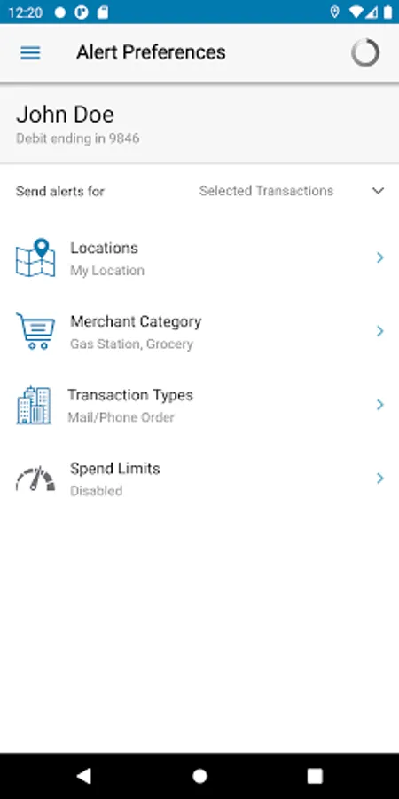 Spending limits can be established to allow transactions up to a certain dollar value and decline transactions when amounts exceed your defined thresholds. Transaction can be monitored and managed for specific merchant categories such as gas stations, department stores, restaurants, entertainment, travel and groceries. And you transaction can also be monitored for specific transaction types in store purchases, e-commerce transactions, mail/phone orders and ATM transactions