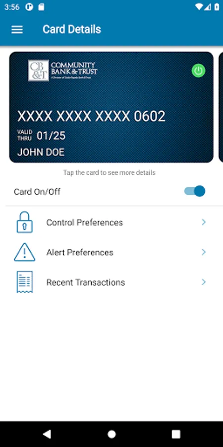 Community Bank & Trust helps protect your debit and credit cards by sending transaction alerts and giving you the ability to define when, where and how your cards are used. Simply download the app to your smartphone, then customize your alert preferences and usage settings to monitor and manage your cards.