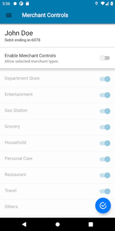 Spending limits can be established to allow transactions up to a certain dollar value and decline transactions when amounts exceed your defined thresholds. Transaction can be monitored and managed for specific merchant categories such as gas stations, department stores, restaurants, entertainment, travel and groceries. And you transaction can also be monitored for specific transaction types in store purchases, e-commerce transactions, mail/phone orders and ATM transactions