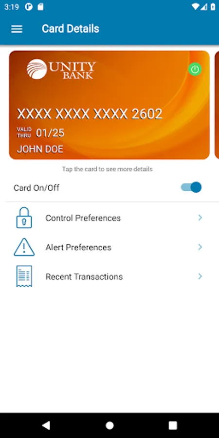 UnityControl helps you protect your Unity Bank debit cards by sending you transaction alerts and giving you the ability to define when, where, and how your cards are used. Simply download the UnityControl app to your smartphone, then customize your alert preferences and usage settings to monitor and manage your cards.