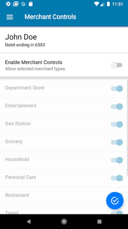 Spending limits can be established to allow transactions up to a certain dollar value and decline transactions when amounts exceed your defined thresholds. Transaction can be monitored and managed for specific merchant categories such as gas stations, department stores, restaurants, entertainment, travel and groceries. And you transaction can also be monitored for specific transaction types in store purchases, e-commerce transactions, mail/phone orders and ATM transactions