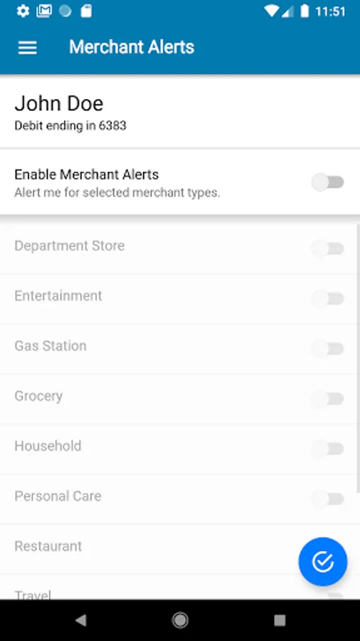 Alerts for PIN and Signature transactions can be set up to keep you informed of your debit and credit card usage and help you quickly detect unauthorized or fraudulent activity. The app can send an alert when a card is used or when a transaction has been attempted but is declined – and additional customizable alert options are available. Alerts are immediately after a transaction has taken place.
