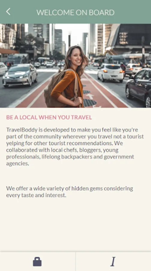 Target Audience: travelers who prefer local attractions over tourist attractions Main Purpose: Informing the users about local gems where they travel City titles of the app help the app accomplish its purpose.
