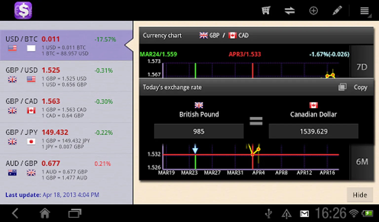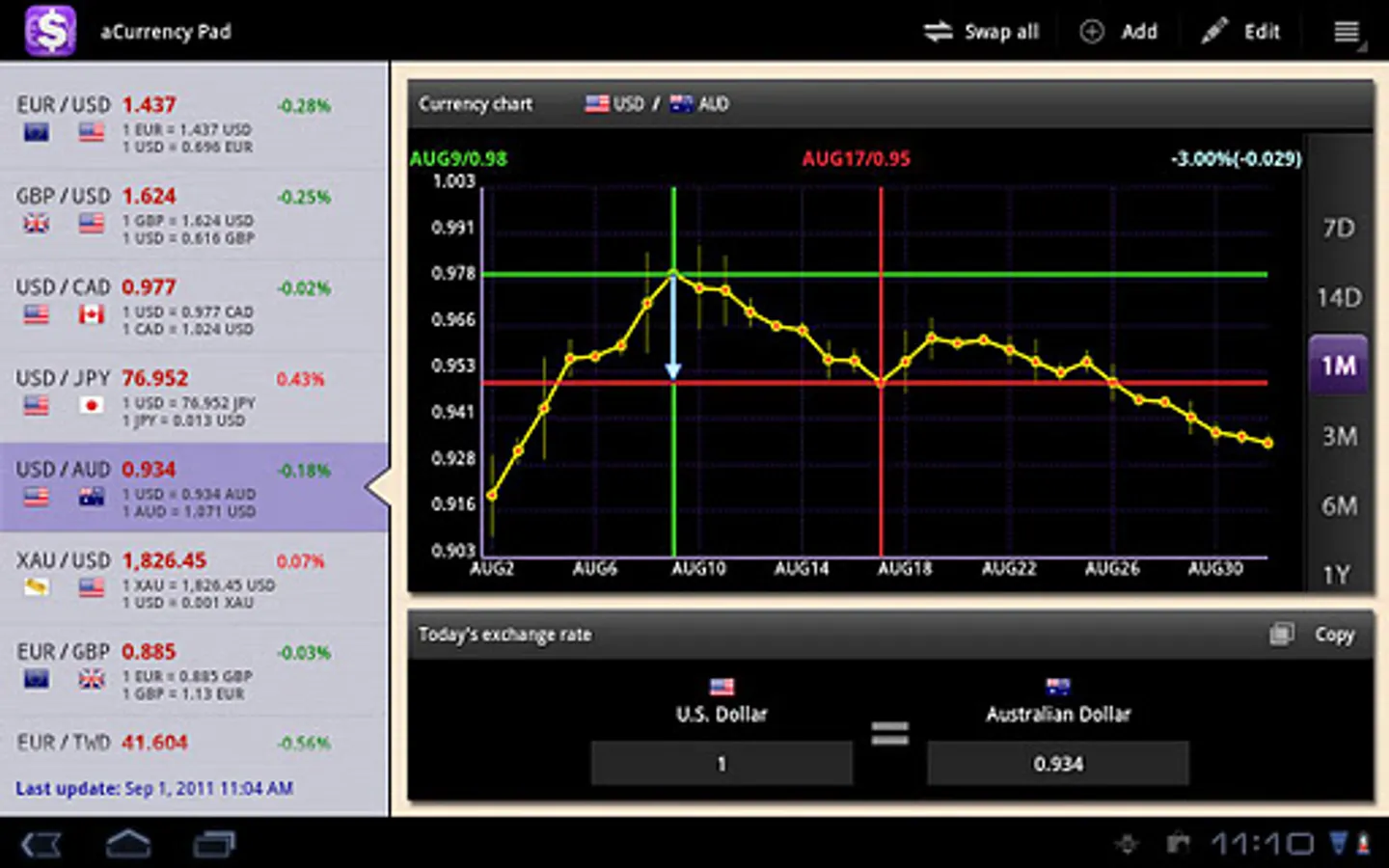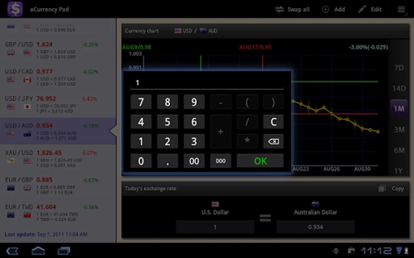 aCurrency Pad is a currency converter for 180+ currencies with hourly exchange rates update.