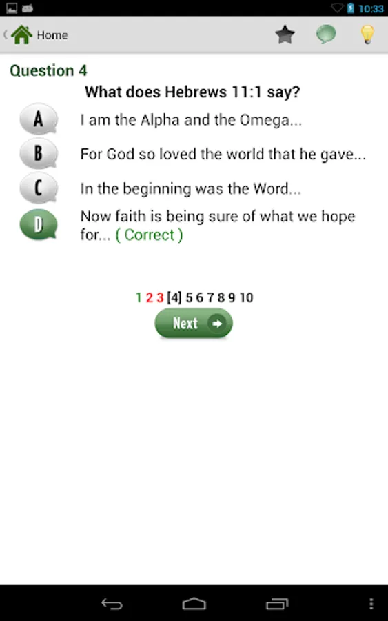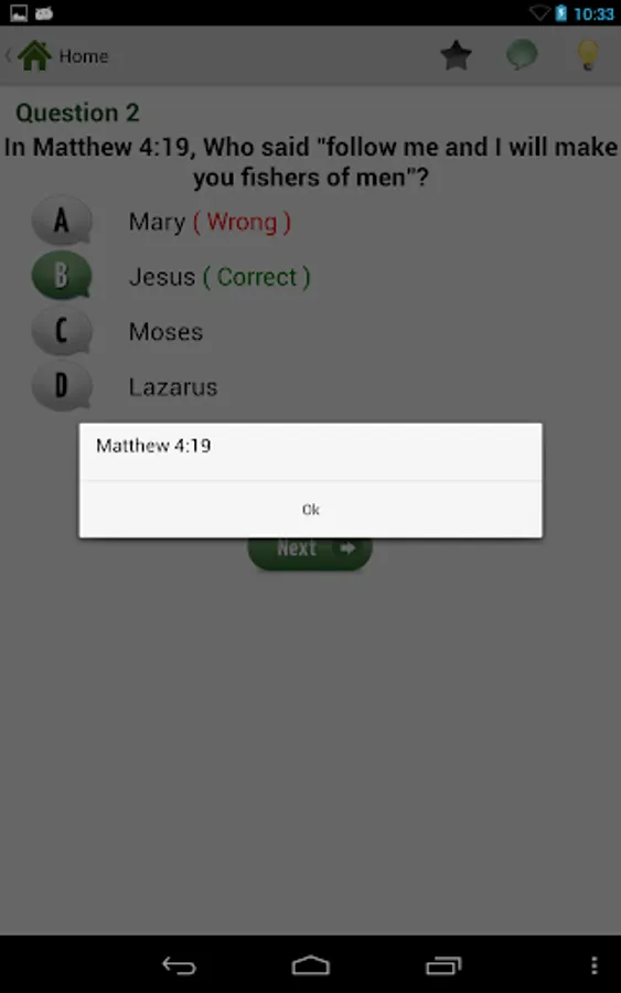 Thanks for using Bible Trivia, do not forget to rate or let some comment to help us improving this app.