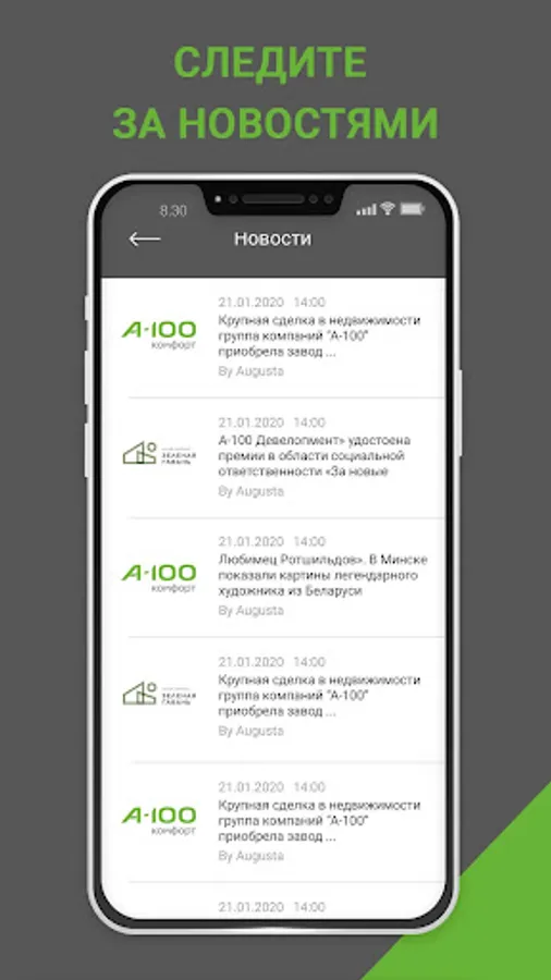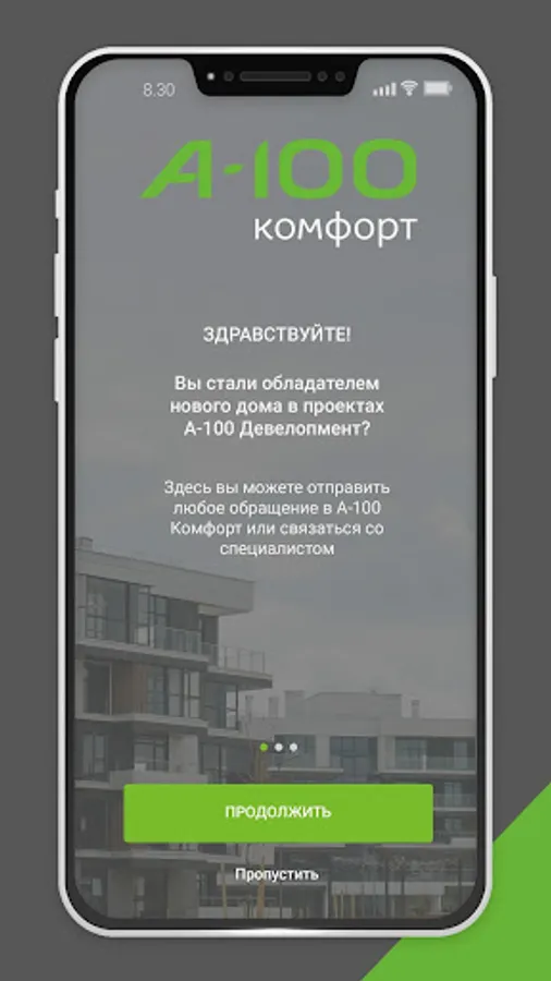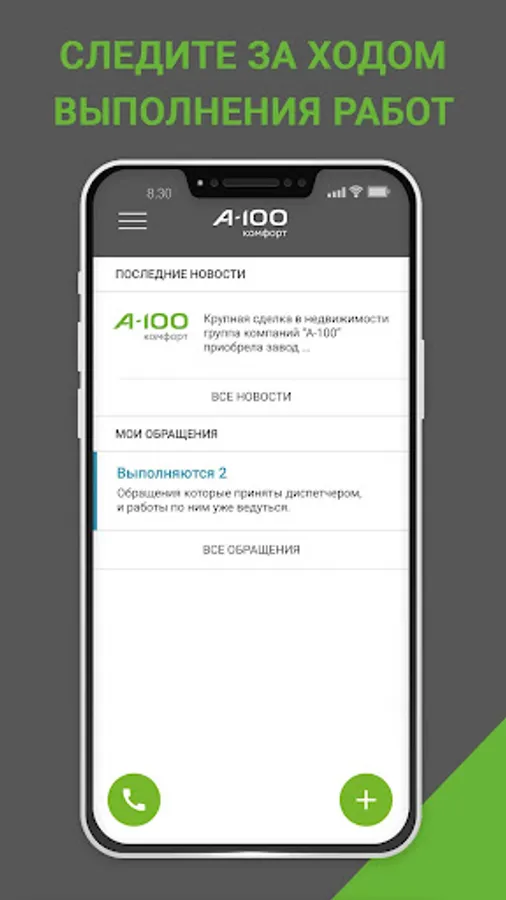 A-100 Comfort - an application for residents of the projects of the A-100 Development company: New Borovaya, Pier and Green Harbor.