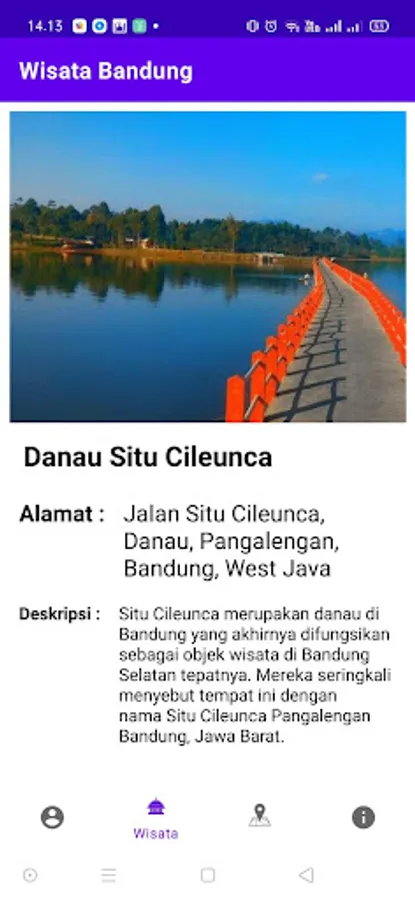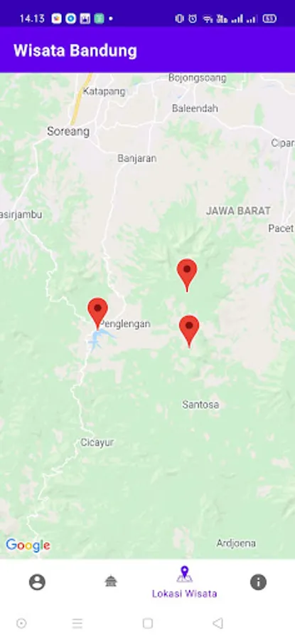 Aplikasi ini menyediakan fitur-fitur seperti daftar wisata di Bandung beserta lokasinya.