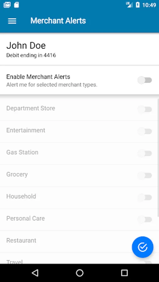 Alerts for PIN and Signature transactions can be set up to keep you informed of your debit and credit card usage and help you quickly detect unauthorized or fraudulent activity. The app can send an alert when a card is used or when a transaction has been attempted but is declined – and additional customizable alert options are available. Alerts are immediately after a transaction has taken place.
