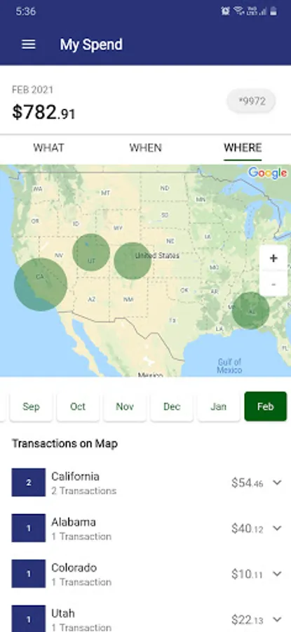 • Clearly see your purchases with cleaned up merchant names, location on a map and store info.