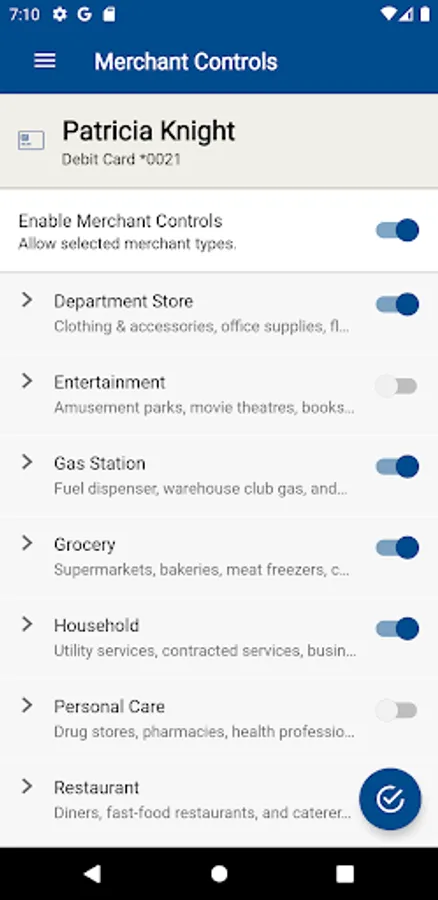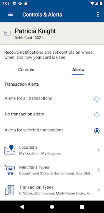 Turn your debit and credit cards on and off with one touch. You can also have peace of mind of being able to control when, where and how they’re used.