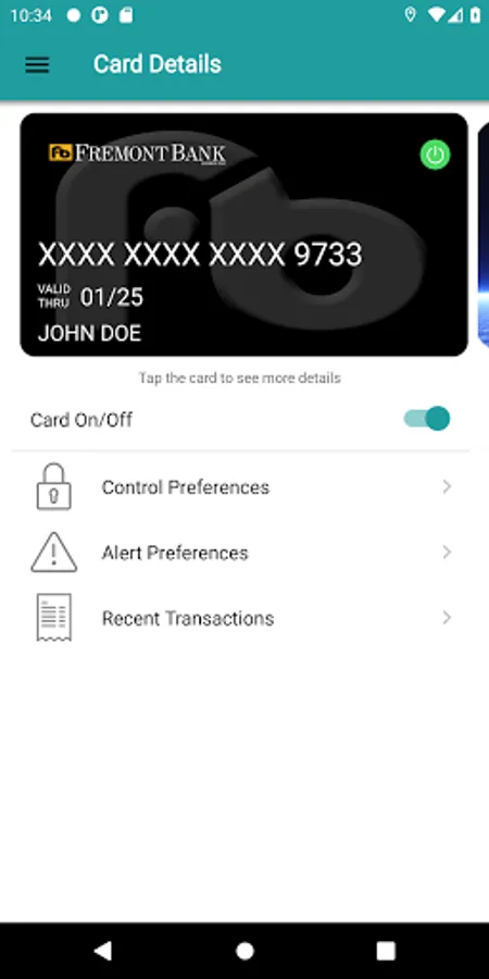 Quickly turn your card off to disable a lost or stolen card and prevent fraudulent activity. When the card is “on” transactions are allowed per your settings. When the card is “off” no purchases or withdrawals are approved.