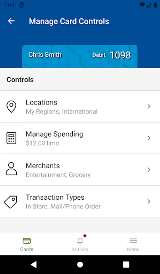 CardControls protects your debit cards by sending transaction alerts and enabling you to define when, where and how your cards are used. Download to your smartphone, then set your preferences to monitor and manage your cards.