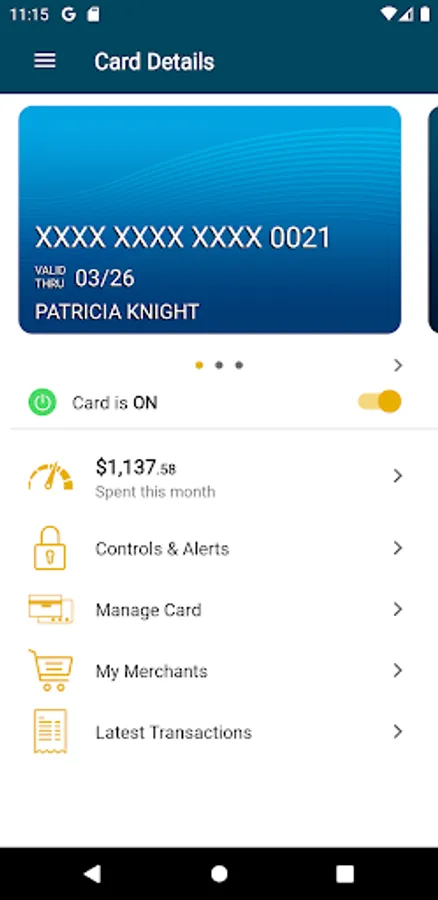 - Control your debit and credit cards with real-time alerts securely from your phone
