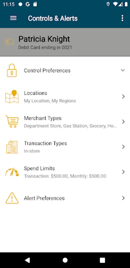 - Control transactions by location, choose merchants, and set purchase limits for yourself or your family members