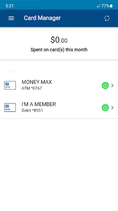 Toggle between “on” or “off” for those just-in-case moments when you are not sure if your card has been misplaced or stolen.