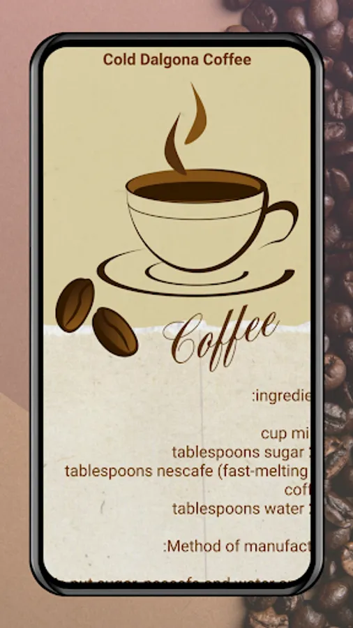 The Cold Coffee Recipes application also provides information about coffee and distinctive images of coffee and will be updated in the coming period.