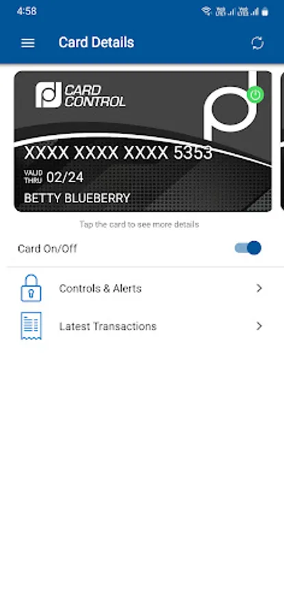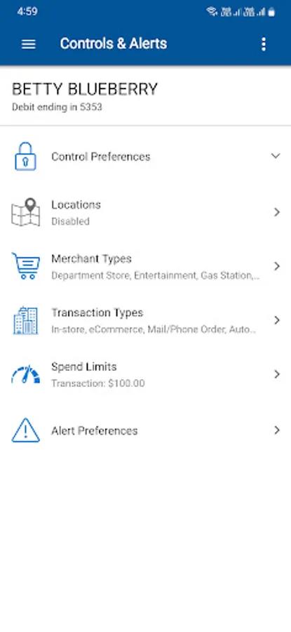 Allows a cardholder to control how, where and when their debit card is used via their mobile device. Turn your card on or off with a touch of a button, set location based controls, block international transactions and set spending limits.