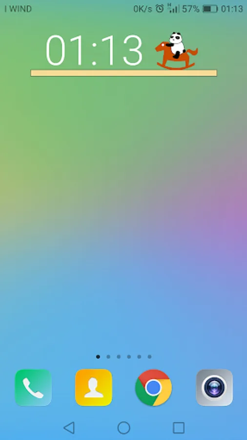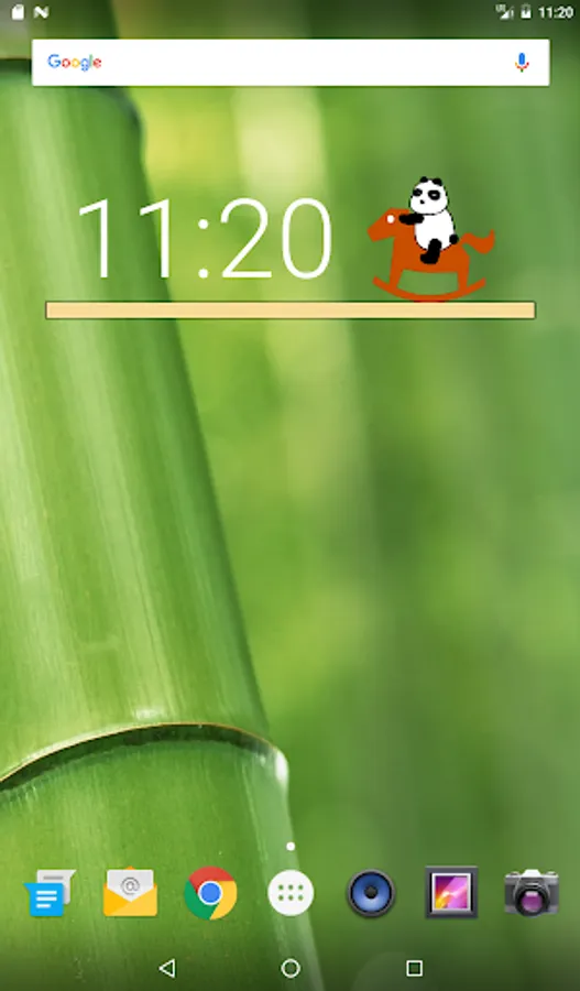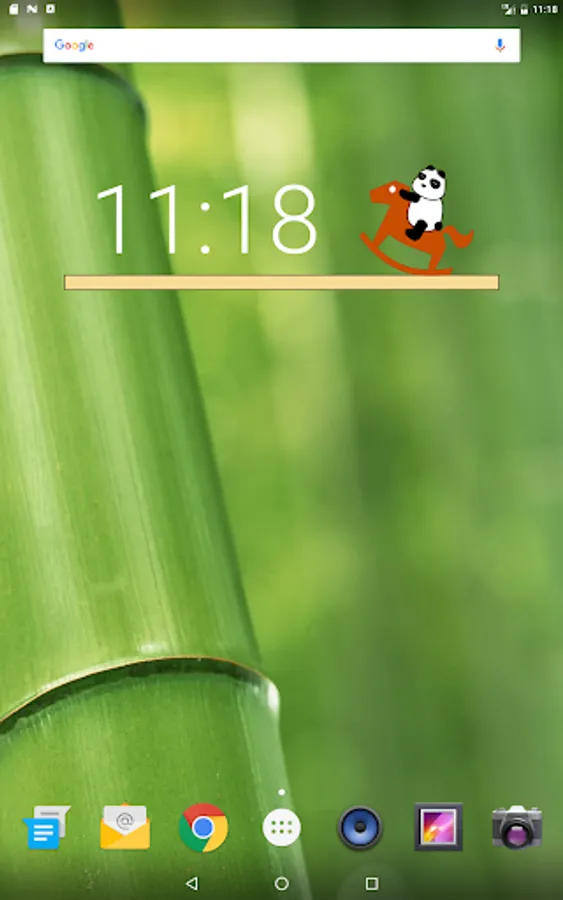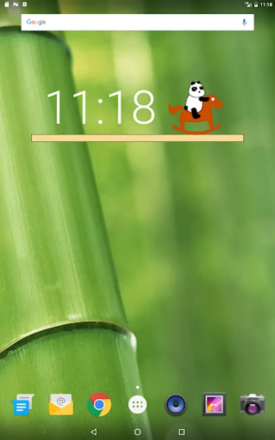 This app is just a widget you can put on your homescreen. It contains a clock allows access to your default system clock app and a panda on a rocking horse. It seems angry but is cute anyway :D. Try to tap on it!!