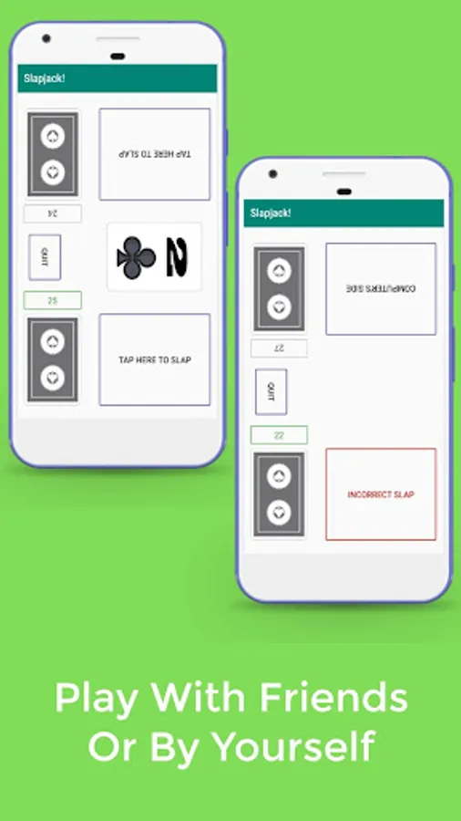 Playing slapjack with your friends only takes one phone! With our easy and intuitive layout design it is like playing slapjack with real cards!