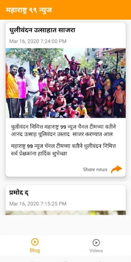 Maharashtra 99 News application is Marathi language based news application, which updates daily based news in social post format. In this application user can also watch news in proper video manner. User can also share these news on other social media application
