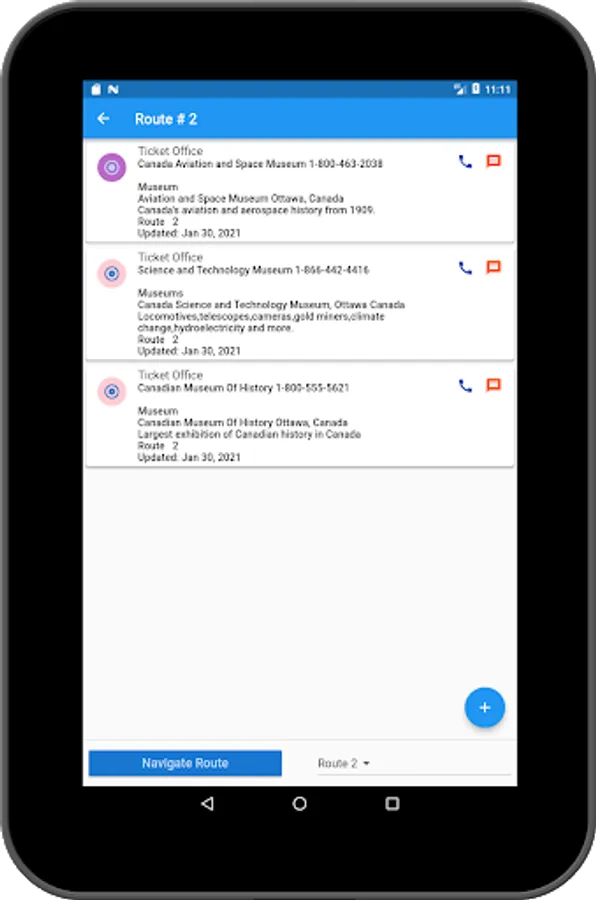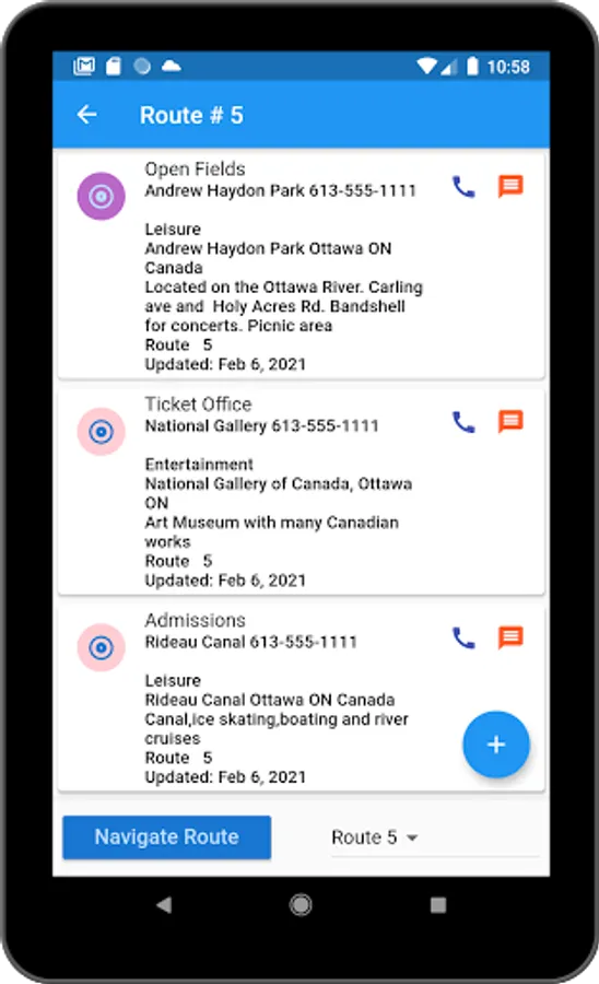 Perfect for users that need to navigate routes on ongoing basis. Store personal or business contacts . Easily plot and save routes. Data is saved locally on the device. Capacity for 5 separate routes lets you categorize locations to suite your needs.