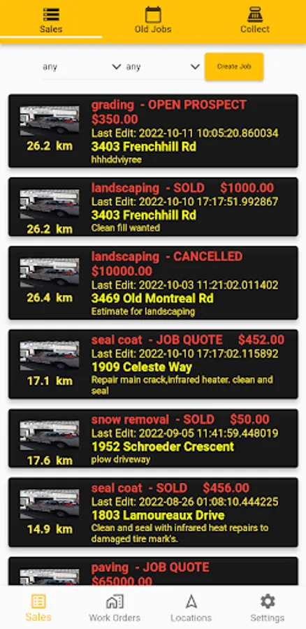 A productivity app to manage company sales activity from initial customer enquiry through all stages to job completion. Sales reps can track sales lead progress from initial prospects through the estimates, job quotation and sales phases of the sales process. The app is maps driven and allows for calling, texting, emailing and navigation of sales prospects. Sold jobs are posted on job boards available to company technicians and labourers to navigate efficiently to and from job sites.