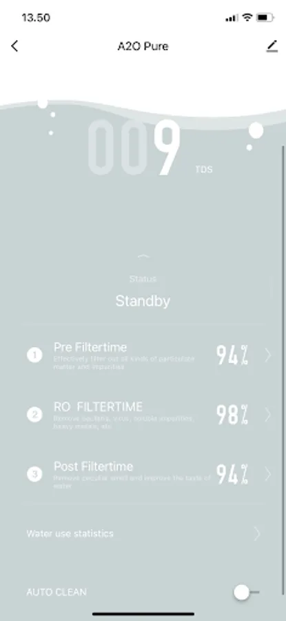 Create transparency between you and your Aquaporin water purifier by tracking your water usage. Monitor your filter lifetime, next maintenance, and the effectiveness of the purification of the purifier.